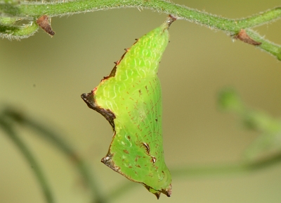 In 2016, I observed a female Blue-eyed Sailor ovipositing on Brush Noseburn, Tragia glanduligera, in my yard. I located a couple of eggs, which I put in my greenhouse on potted Noseburn just before going out of town. I found the caterpillars on my return, but they soon died. (I suspect some environmental condition, whether human or natural, was in play because numerous other unrelated caterpillars, both in captivity and free, died around the same time period.)